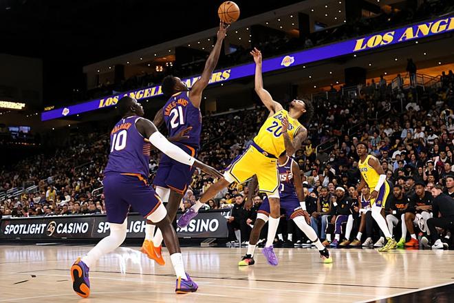本场比赛中,湖人的替补后场新援小尼克-史密斯(Nick Smith Jr.)的表现依然不能算是特别令人满意的。史密斯全场出场11分48秒,投篮8中3,三分线外3中1,罚球4中2,得到了9分2篮板2助攻1盖帽的数据,还有2次犯规,正负值为+2。史密斯在进攻端的效率依然是不太稳定的,他也依然没有展现出任何稳定的进攻手段,他的得分能力依然是没有展现出来,他在组织和串联方面的表现也不能算是特别理想,而且他在防守端的作用也是非常有限的。考虑到史密斯在很多时候面对的都是对手第三甚至是第四阵容的球员,他只能打出这样的表现和这样的进攻效率,确实是有些稍微差了一些,他本应该要在这样的情况下打出统治级的表现才对,但是他并没有成功做到这一点。